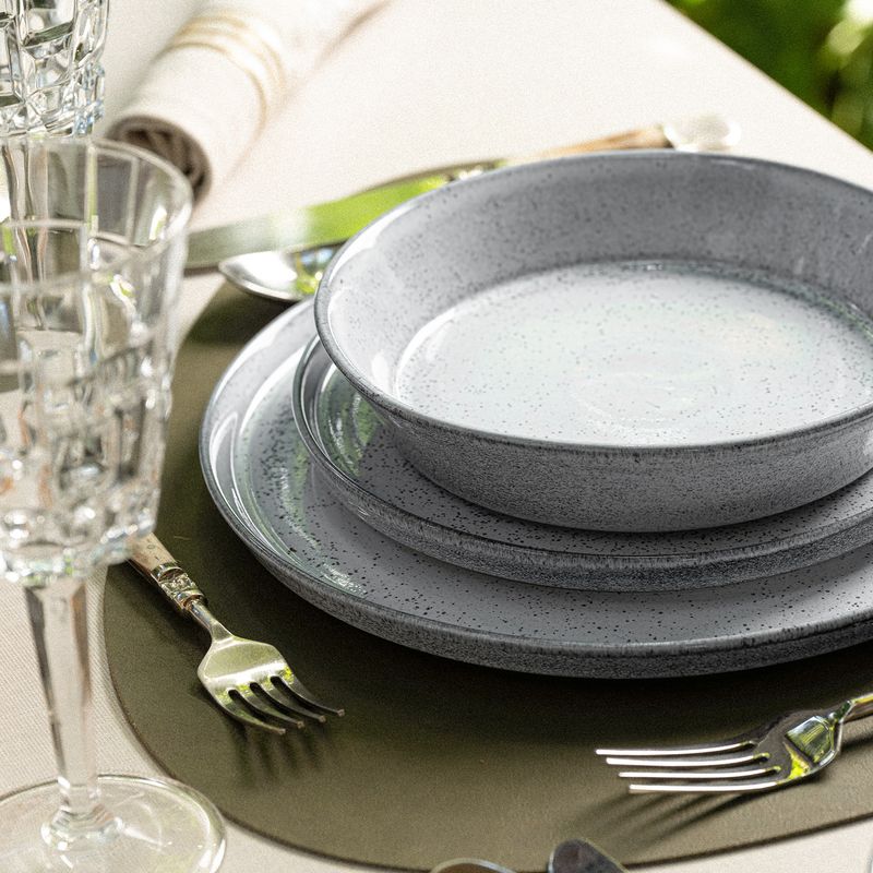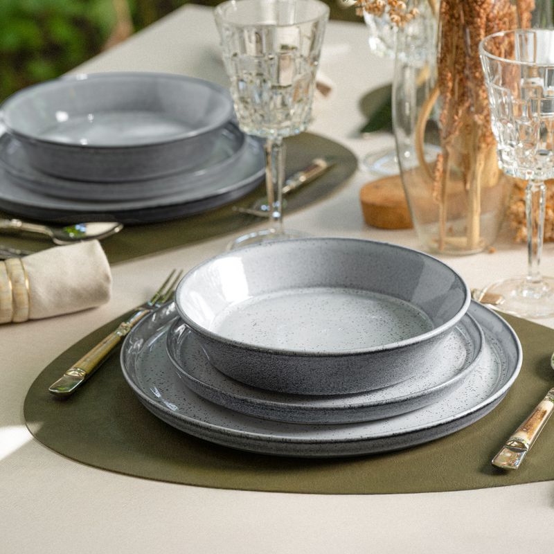 O Aparelho de Jantar 18 Peças Neo Echo é produzido em stoneware de alta resistência, uma cerâmica nobre que passa por queima em alta temperatura, garantindo durabilidade e resistência para o uso diário.